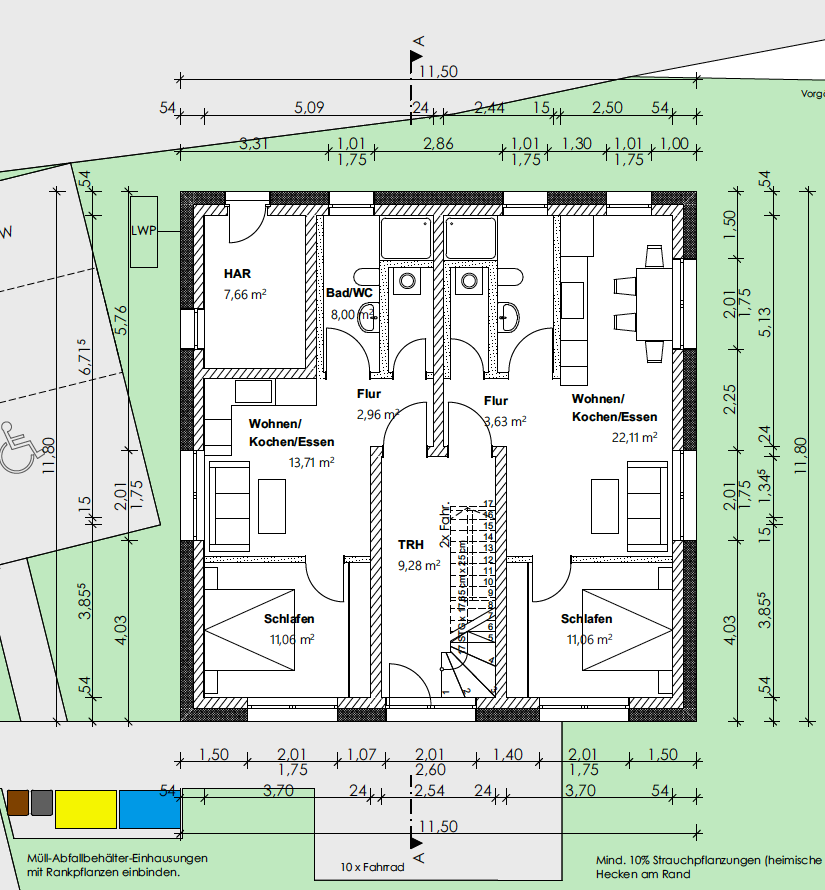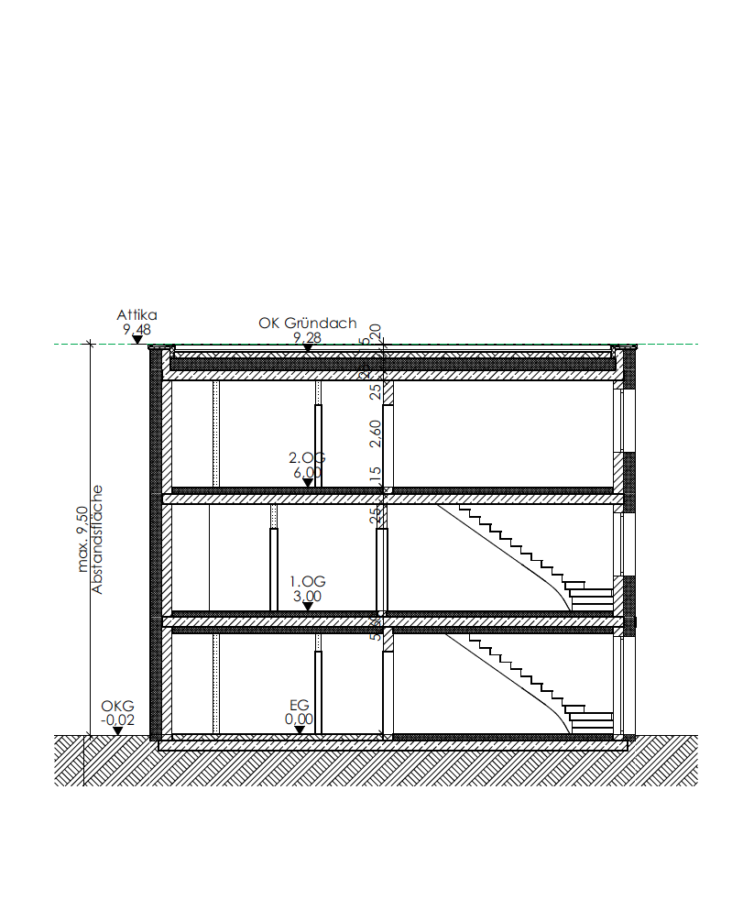 Das geplante Gebäude umfasst drei Vollgeschosse mit Flachdach und bietet eine Gesamtwohn- bzw. Nutzfläche von ca. 255 m², verteilt auf 3 Etagen. Im 2. Obergeschoss ist derzeit eine Gewerbeeinheit vorgesehen, welche jedoch ohne Weiteres auch zu Wohnzwecken umgeplant werden kann. Damit bietet das Projekt Flexibilität für unterschiedliche Nutzungskonzepte – ob reine Wohnnutzung oder eine Kombination aus Wohnen und Arbeiten.