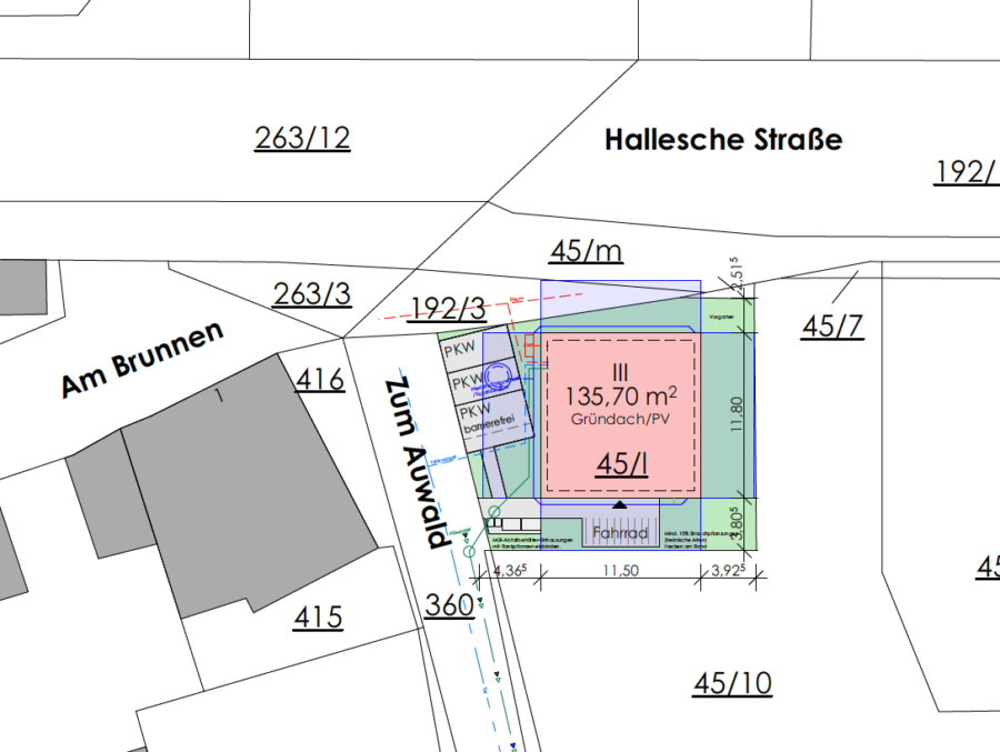 Zusätzlich sieht die Planung die Errichtung von vier Stellplätzen auf dem Grundstück vor, was die Attraktivität des Objekts sowohl für zukünftige Bewohner als auch mögliche Gewerbetreibende erhöht.