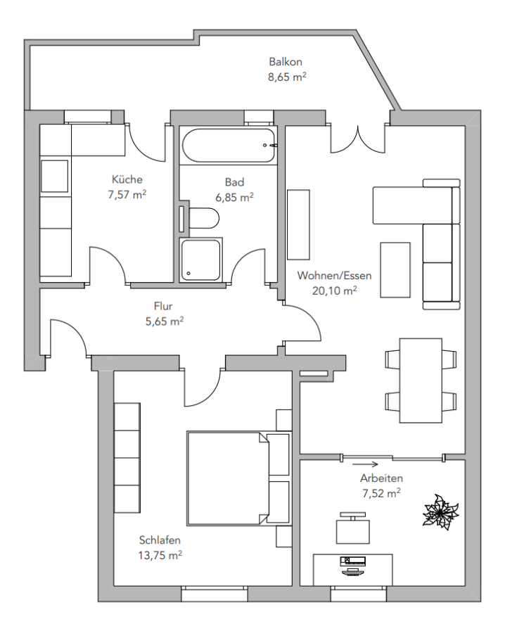 Wohnfläche ca.64,74 m²